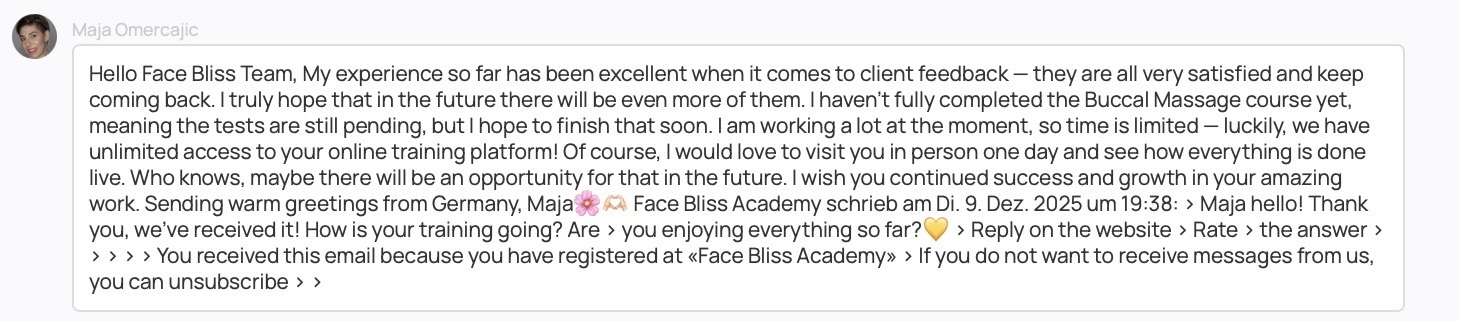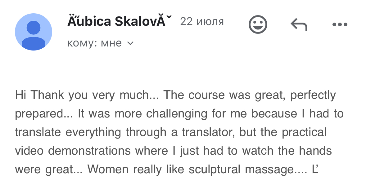 The massage oil has a perfect texture—not too light, not too dense. It provides ideal glide, does not overload the skin, and allows deep, precise, and safe technique execution.